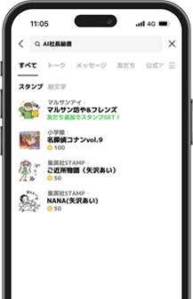 検索窓に「AI社長秘書」と入力する「AI社長秘書」をタップして友達追加する